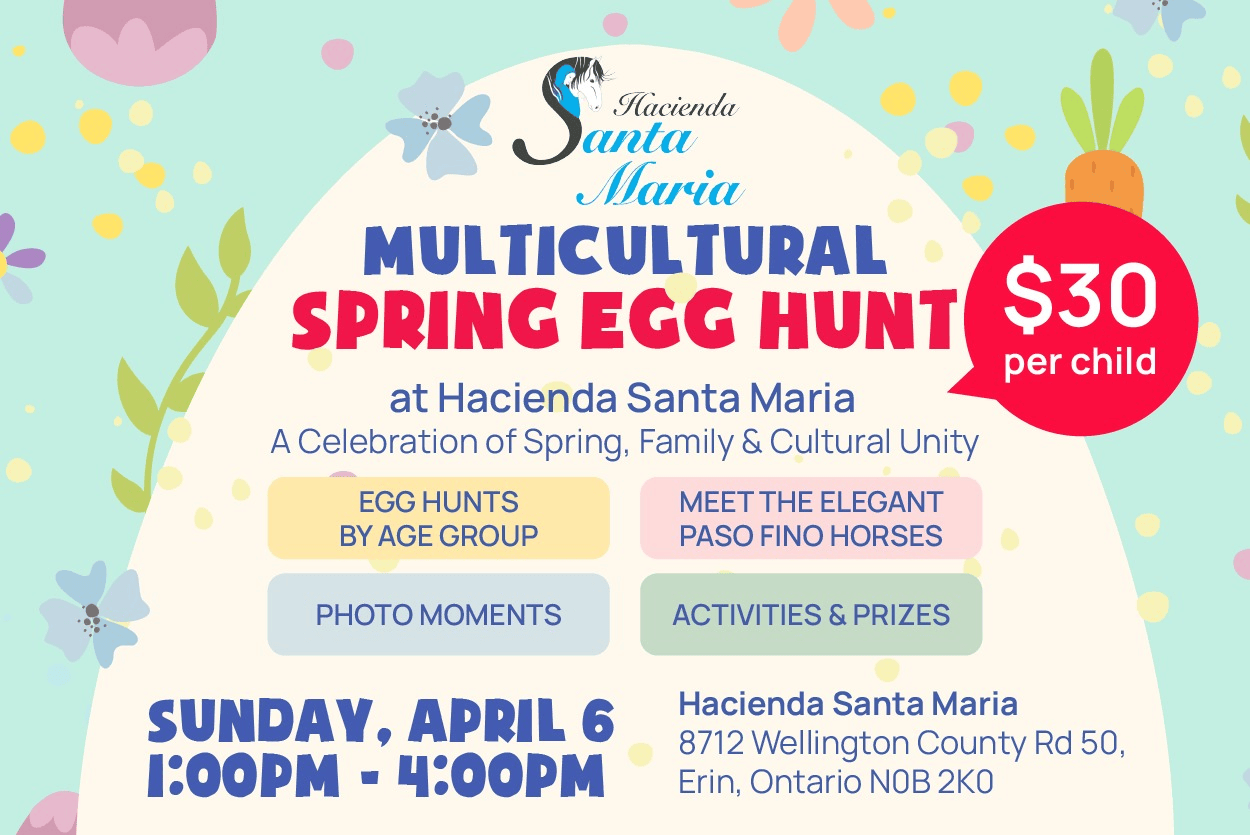 At Hacienda Santa Maria, we make the most of the beautiful Southern Ontario countryside by hosting numerous outdoor activities throughout the year. We offer private and group riding lessons, which include a full curriculum of theory, riding training, and education about horse care. Our event schedule includes horse fairs, trail rides, picnics, and horse shows, among other occasions. If you’re looking for a unique way to celebrate a family milestone or a great place to host a corporate event, Hacienda Santa Maria farm is the perfect venue for a relaxing day away from the city. We also welcome school field trips and have many options available on request.